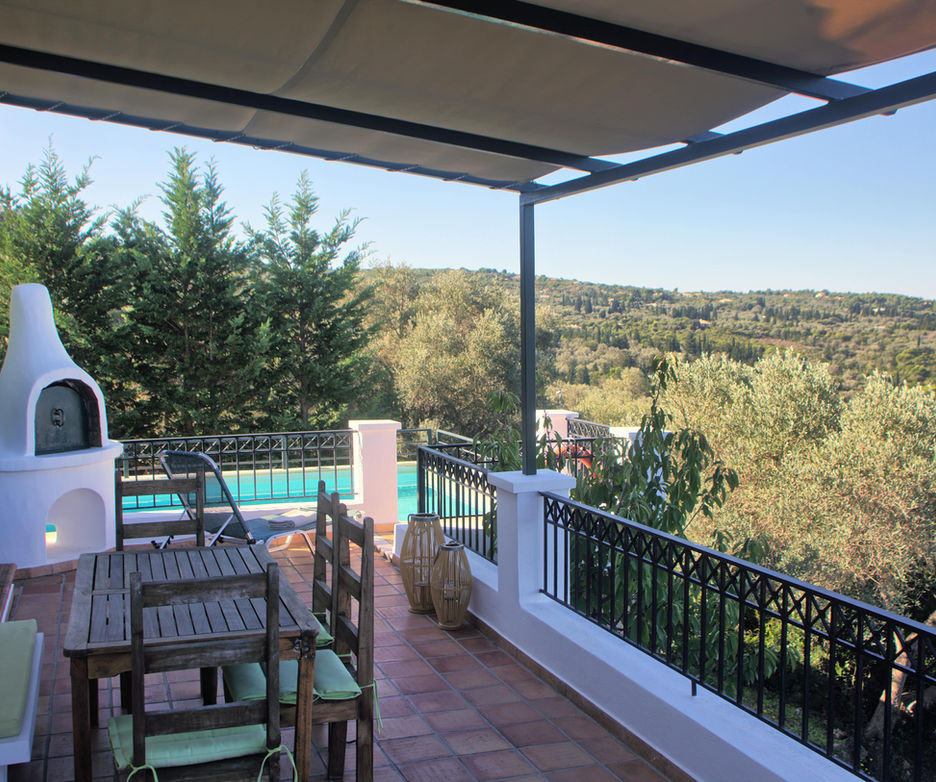 The four villas are situated in a peaceful panoramic location above the village of Tsoukalades, which offers taverns and a small supermarket. Access to the houses is via a narrow, partly steep dirt road. Guests are welcome to help themselves to the herb garden located between the holiday homes. The beautiful beaches of the west coast, as well as Agios Nikitas and Lefkas Town, are easily accessible by car.